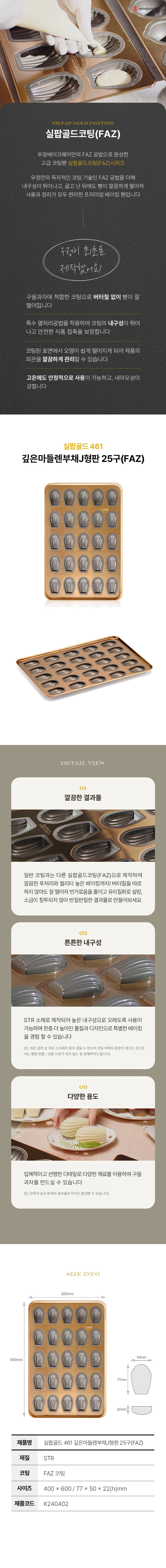 Product › K240402 실팝골드461깊은마들렌부채J형판25구(FAZ) Image 1 of 2 Image 2 of 2 K240402 실팝골드461깊은마들렌부채J형판25구(FAZ) USD 70.00 Size : 400×600 / 77×50×22(h) mm우정베이크웨어의 실팝코팅이 한 단계 더 업그레이드 되었습니다.실팝코팅에우정만의 'FAZ' 공법을더해 '실팝골드코팅'을새롭게출시하였습니다. Quantity: Add To Cart Added! Size : 400×600 / 77×50×22(h) mm우정베이크웨어의 실팝코팅이 한 단계 더 업그레이드 되었습니다.실팝코팅에우정만의 'FAZ' 공법을더해 '실팝골드코팅'을새롭게출시하였습니다.
